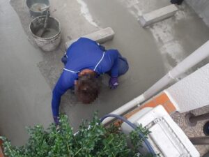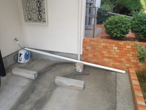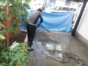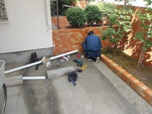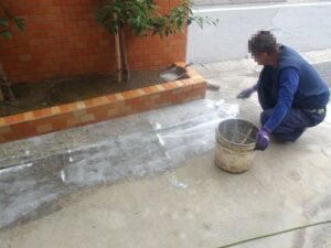 駐車場の床面、左官補修。 2025年10月16日 / 住宅リフォーム 施工前 雨どい切除 雨どい組み換え 経路変更完了 雨水受けブロック 床面高圧洗浄 高圧洗浄 左官材料 シーラー塗り 左官作業 完了 雨樋からの雨水の長年の流れで、駐車場中央部がえぐれていました。 今回、雨樋からの雨水の排水経路を花壇に変更したうえで、駐車場の床面左官補修を行いました。 花壇の土が豪雨の際に抉れないよう、緩衝地帯として化粧ブロックを設置しました。 共有: クリックして X で共有 (新しいウィンドウで開きます) X Facebook で共有するにはクリックしてください (新しいウィンドウで開きます) Facebook いいね:いいね 読み込み中… 関連