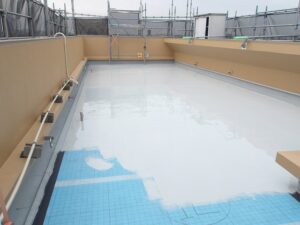 - 防水工事(屋上はアスファルト保護コンクリート仕上げから、ウレタン防水通気緩衝工法仕上げへ改修。)